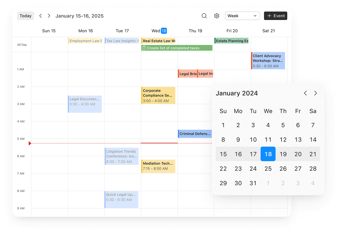 Easily Organize your tasks using customizable task lists, deadlines, and reminders. Sync your calendar with Lawcus to streamline your schedule and track court dates, meetings, and deadlines in one place.