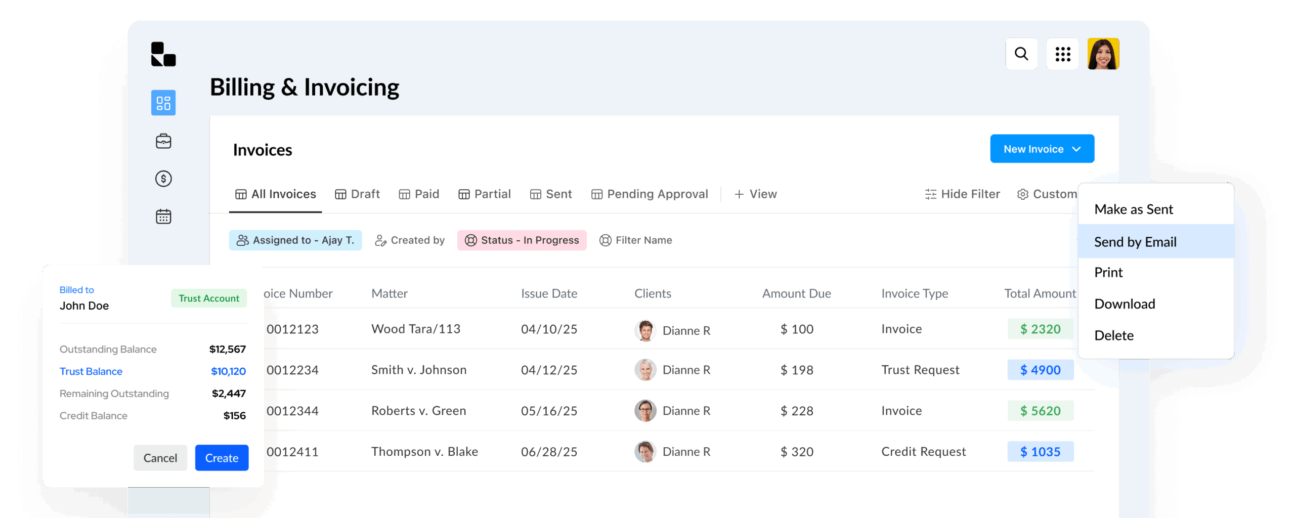 Reduce invoicing hassles and accurately manage cash flow in your firm with our easy-to-use yet advanced legal billing software. Get Paid on Time And Manage your clients using powerful payment reports and analytics.