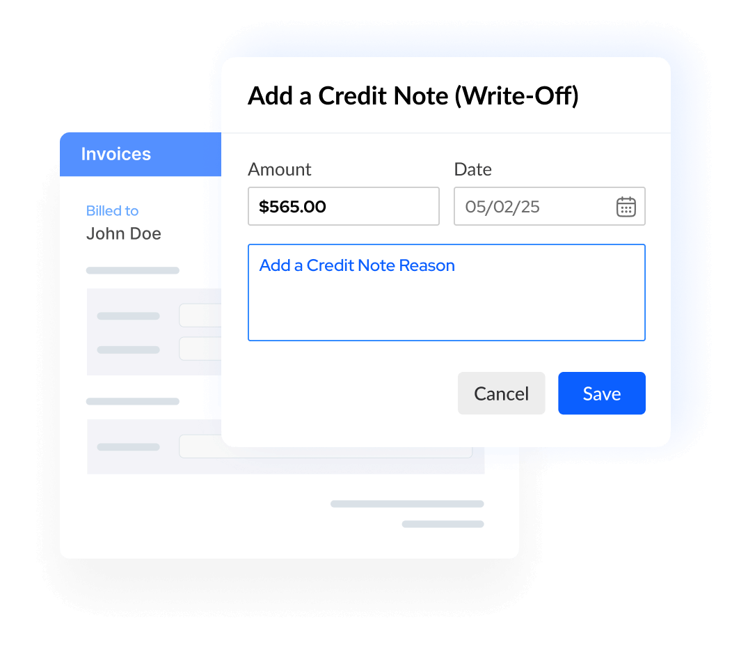 Remove uncollectible amounts from overdue or partially paid invoices with precision. Maintain accurate financial records, improve billing transparency, and keep collections processes efficient.