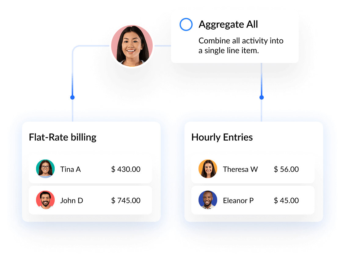 Create compact and consolidated invoices with a limited detail to keep clients informed about your services. Say no to lengthy and inconsistent invoices with multiple aggregation options.