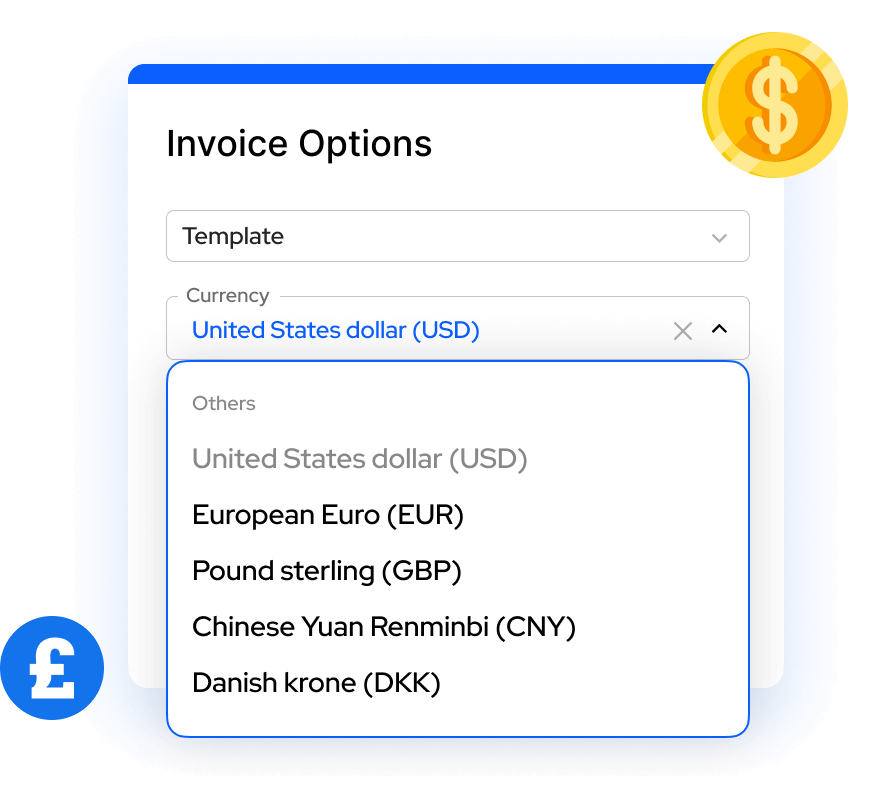 Add custom currency fields to invoice templates. Cater to your overseas clients and adjust currencies seamlessly right from the invoice settings for enhanced flexibility and global compatibility.