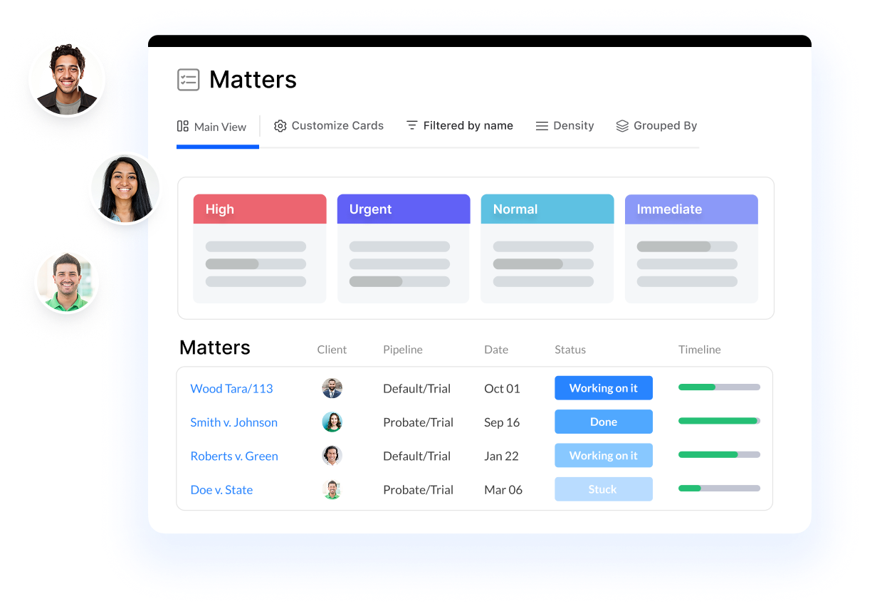 Lawcus gives you a kanban-style bird’s-eye view to quickly see all your matters and instantly know what needs your attention. And if you prefer lists to boards, you can switch to the traditional list view.