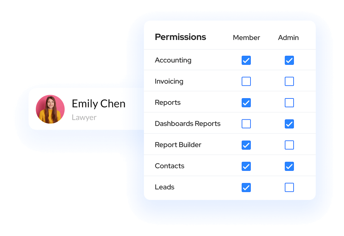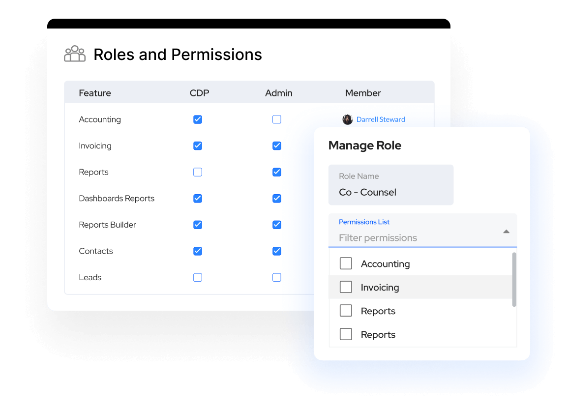 Create custom user roles with specific sets of permissions tailored to your firm’s needs. Define exactly what users can access and do, giving admins full control over functionality and data visibility.