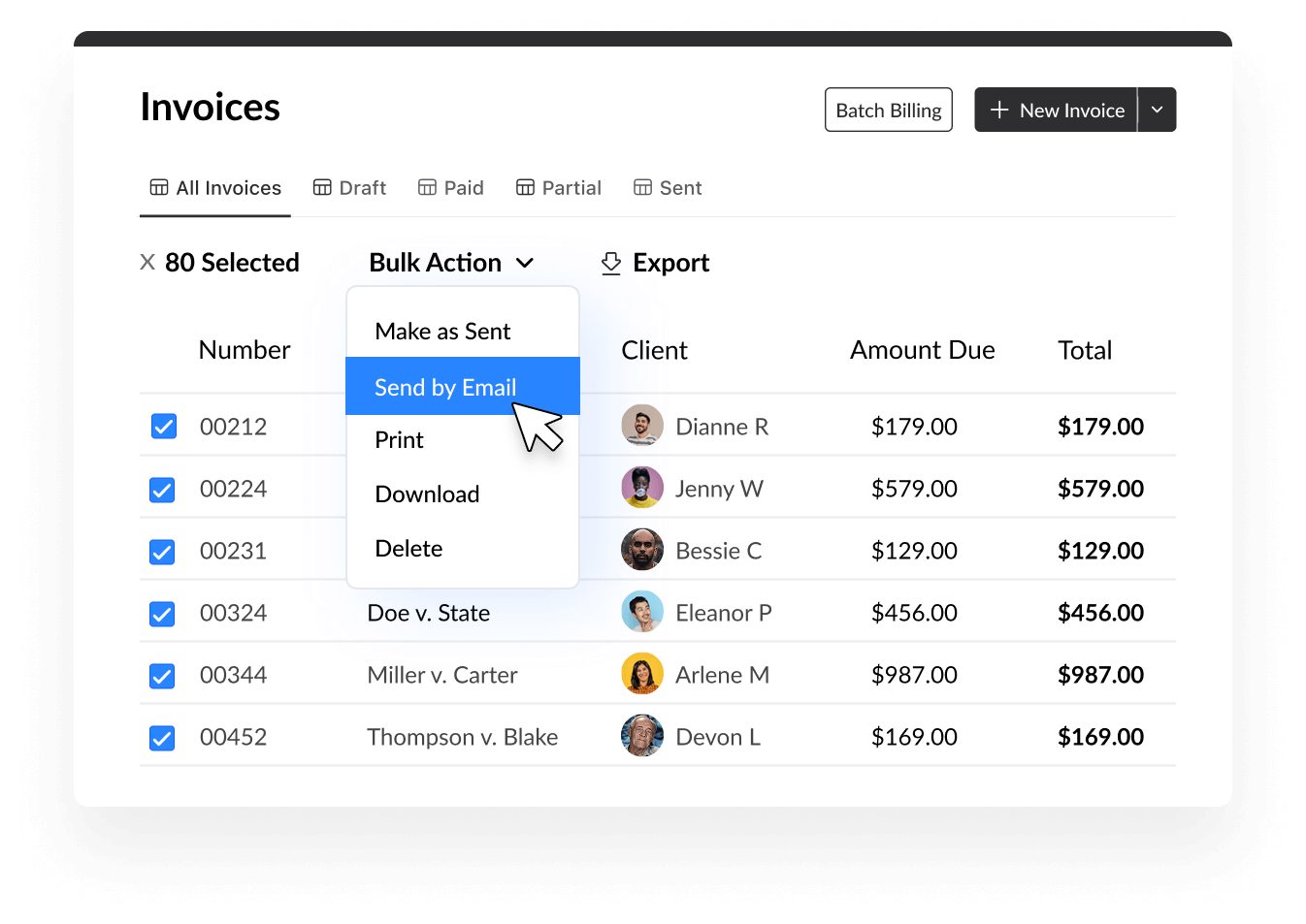Maximize your revenue with our advanced time-tracking tools and robust billing features that are built to help you scale your firm. We make it easy for you to know what’s due, when it’s due, and what’s paid.