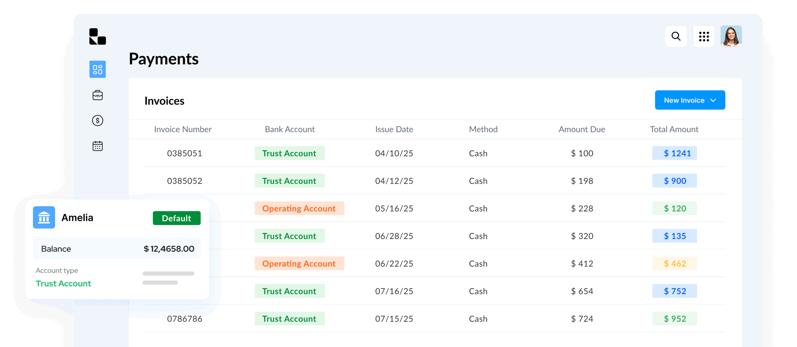 Our Quickbooks integration allows you to sync everything over to QuickBooks Online, like Clients, Invoices and Payments made on your trust account.